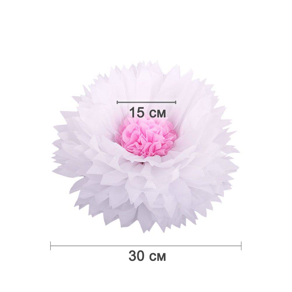 Бумажный цветок 30 см белый+розовый