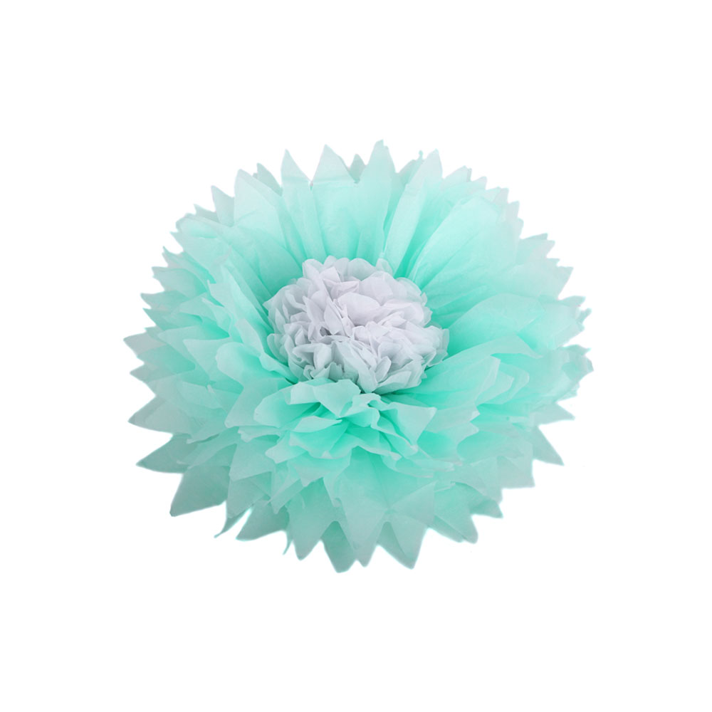 Бумажный цветок 30 см мятный+белый