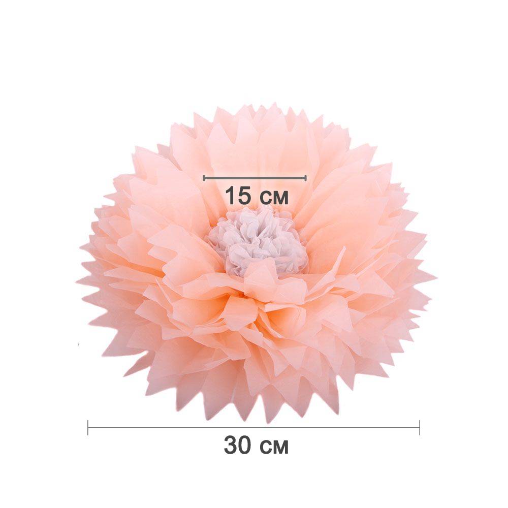 Бумажный цветок 30 см персиковый+белый