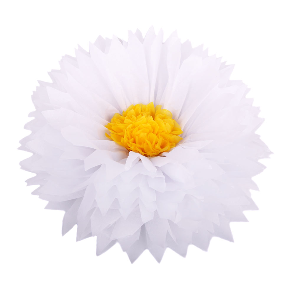 Бумажный цветок 40 см белый+ярко-желтый