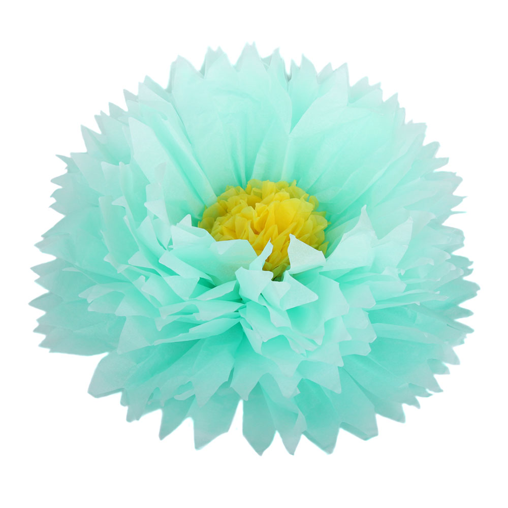 Бумажный цветок 40 см мятный+желтый