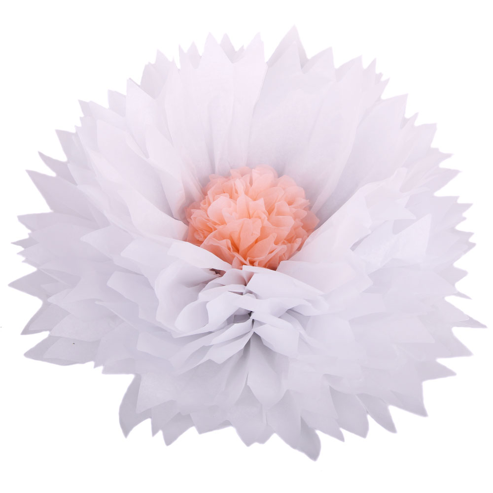 Бумажный цветок 50 см белый+персиковый