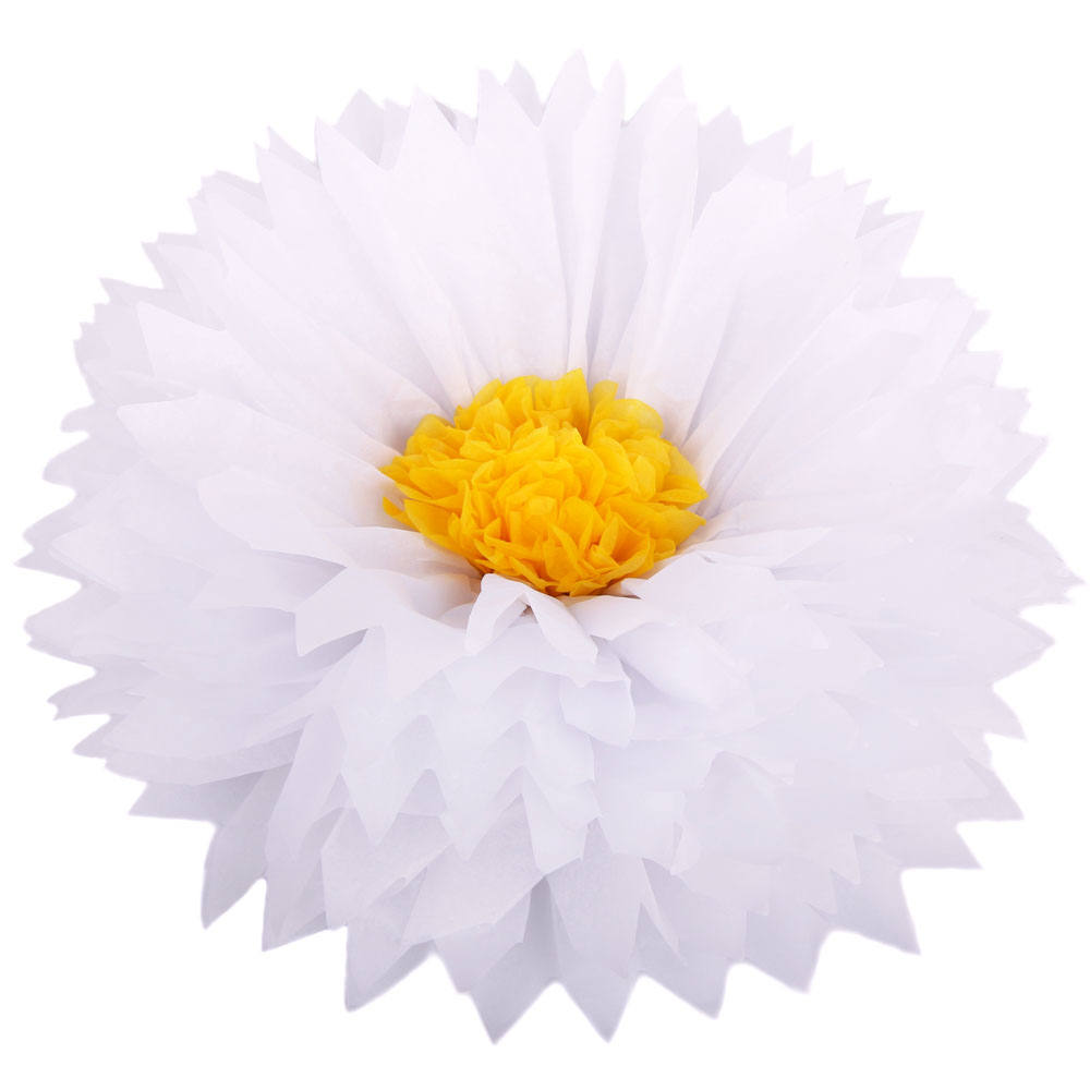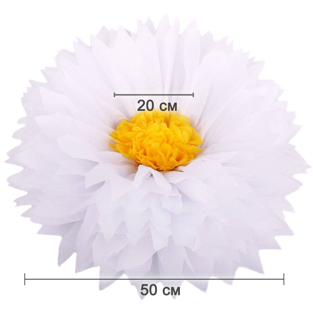 Бумажный цветок 50 см белый+ярко-желтый
