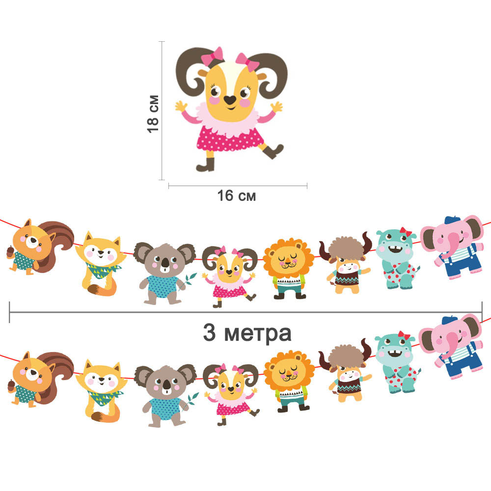 Гирлянда на ленте со спиралями "Зверята" 18х16 см, 8 шт, 3 м