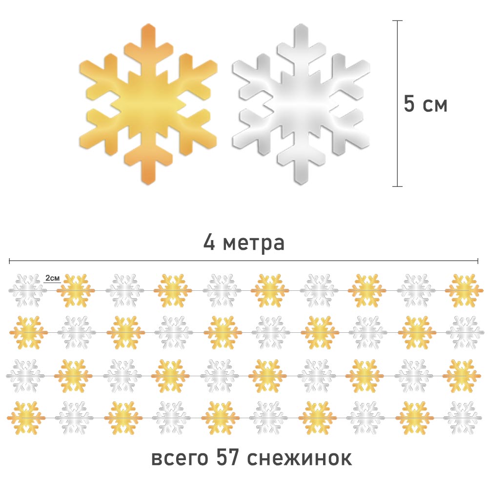 Гирлянда "Снежинки" металлик 5 см 4 м, золото+серебро