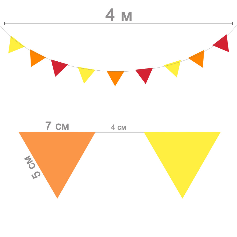 Гирлянда-вымпел № 4 разноцветная 7 х 5 см, 4 м