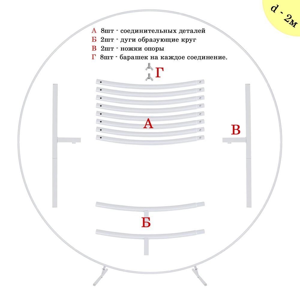 Металлическая конструкция круглой формы в белом цвете. Используется для создания фотозон на мероприятиях, свадьбах и праздниках. Легко собирается и разбирается.