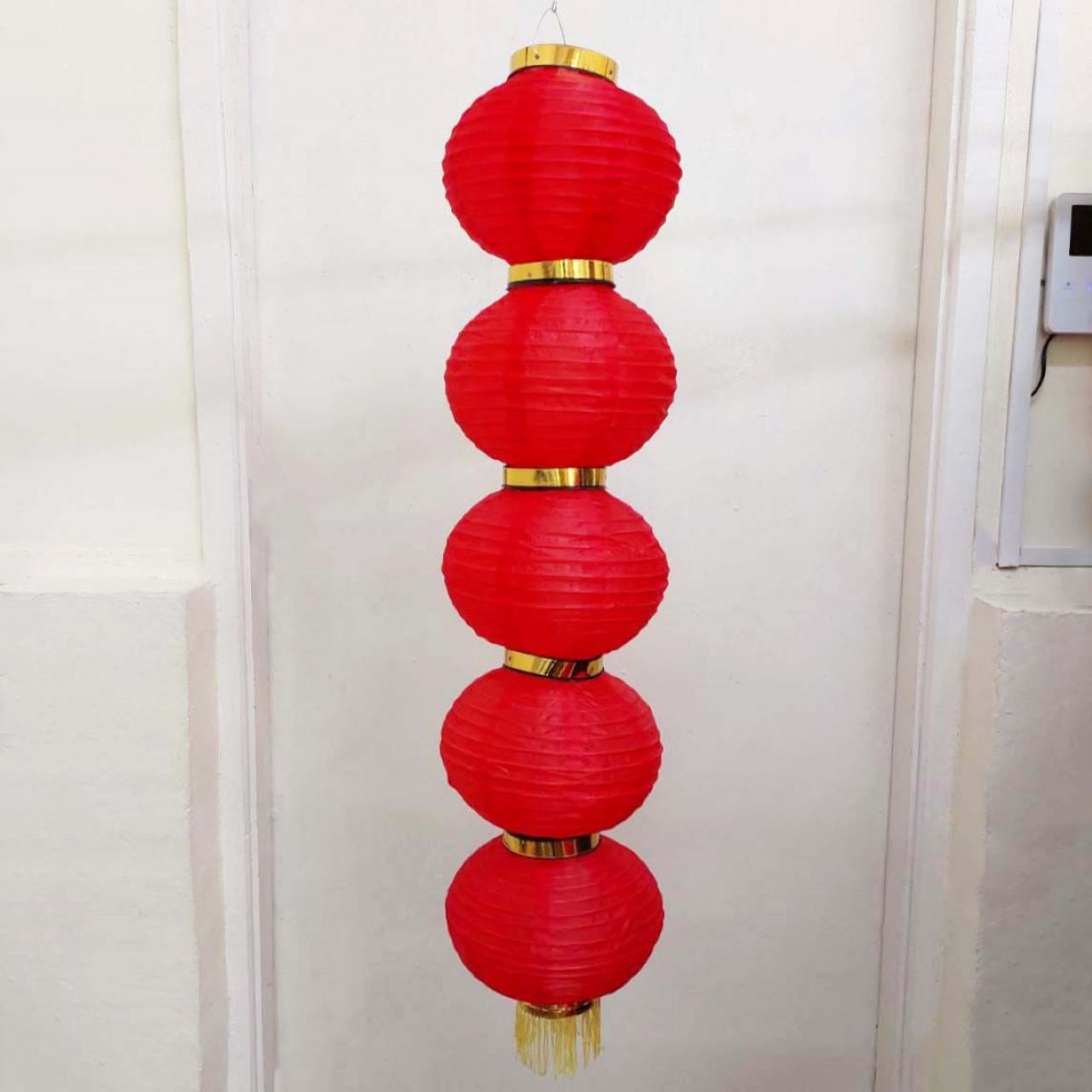 Круглый китайский фонарь состоит из пяти ярусов диаметром 25 см каждый.
