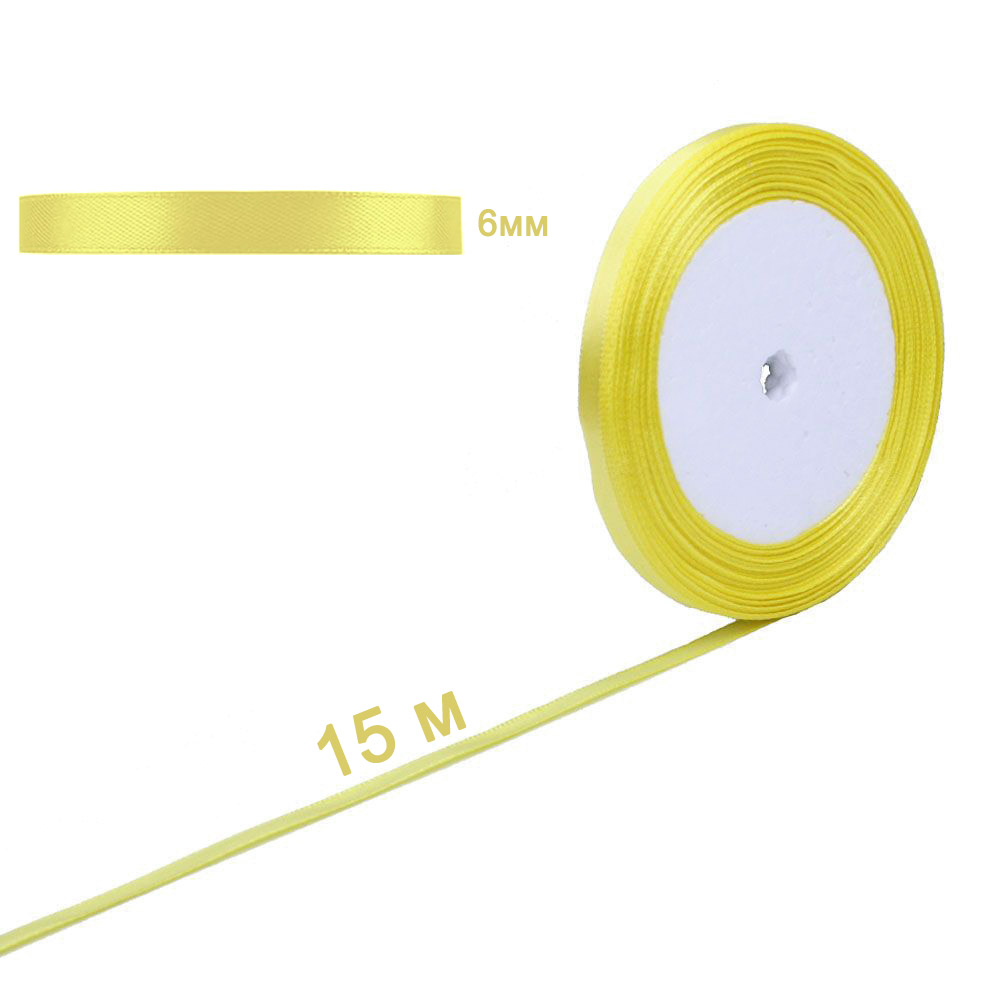 Лента атласная желтая 6 мм х 15 м