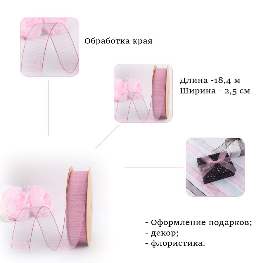 Лента подходит для рукоделия, флористики, создания букетов, бантов, упаковки подарков, новогодней упаковки и других творческих идей.
