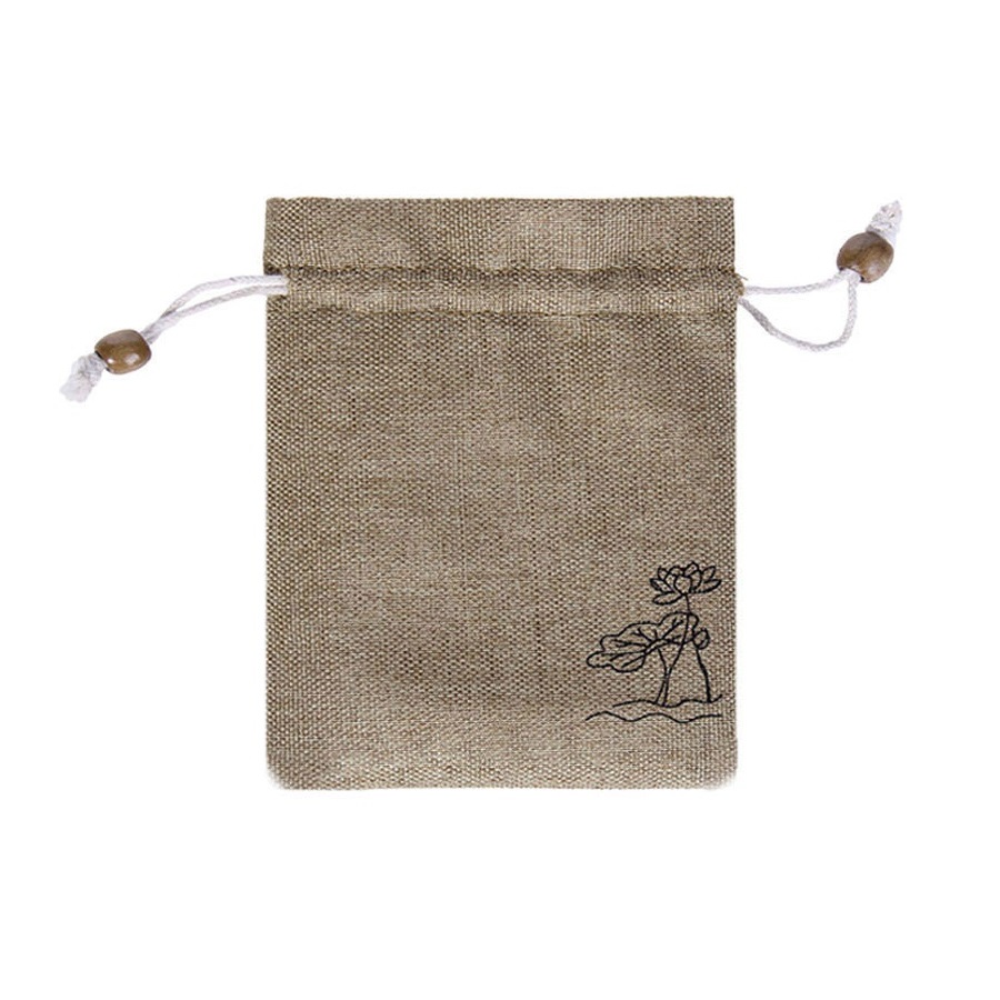 Мешочек из искусственного льна с орнаментом 14х19 см, бежевый
