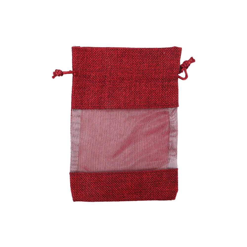 Мешочек из мешковины и органзы 13х18 см бордовый