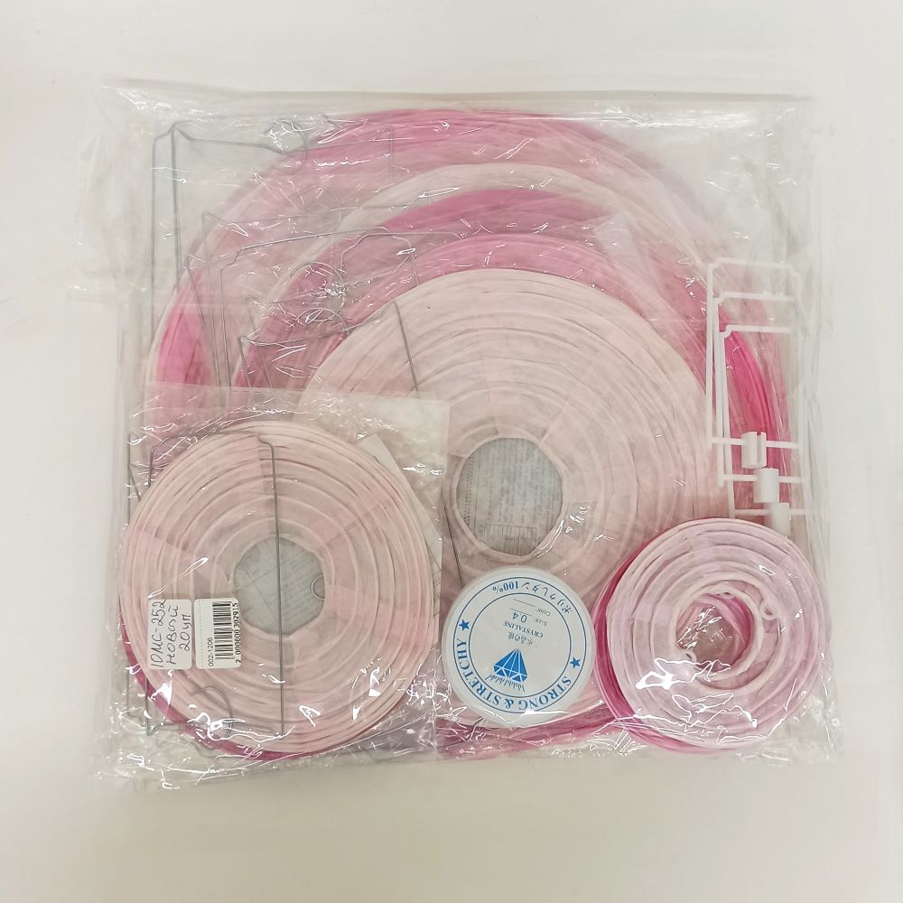 Набор подвесные фонарики 15 шт + леска, св.розовый+розовый+малиновый