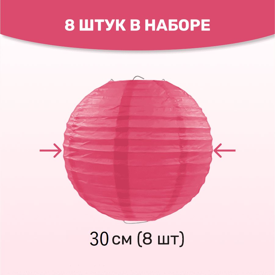 В комплект входит 8 бумажных фонариков и лента атласная.