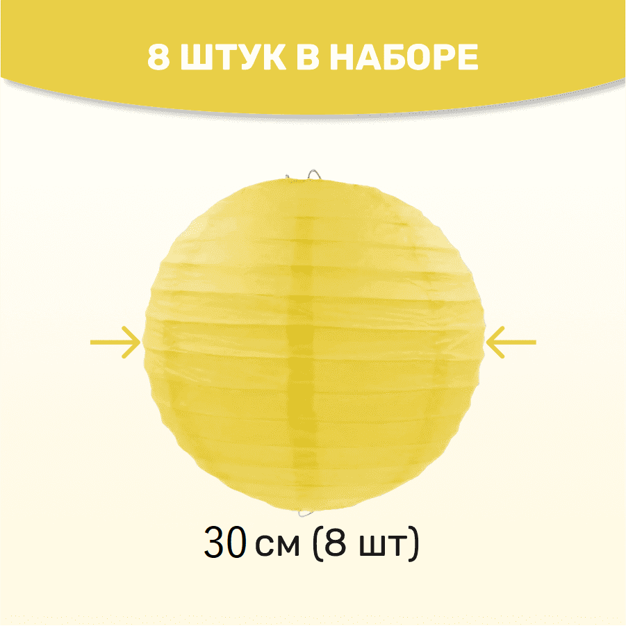 В комплект входит 8 бумажных фонариков и лента.