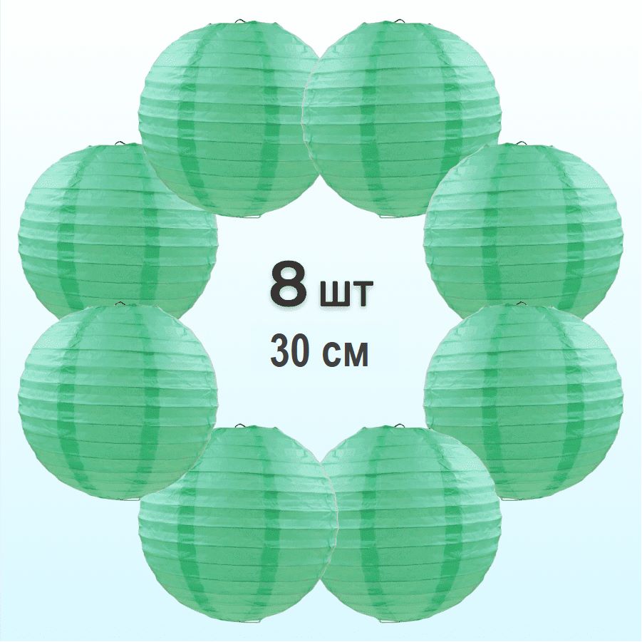 Комплект подвесные фонарики 30 см х 8 шт, мятный