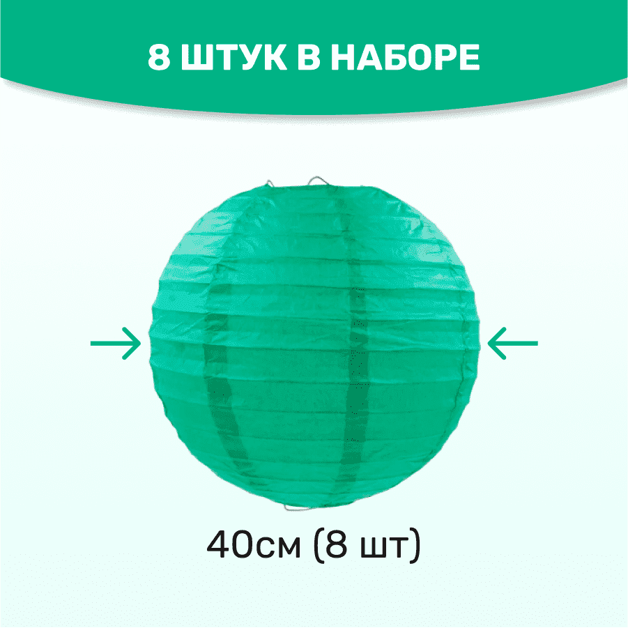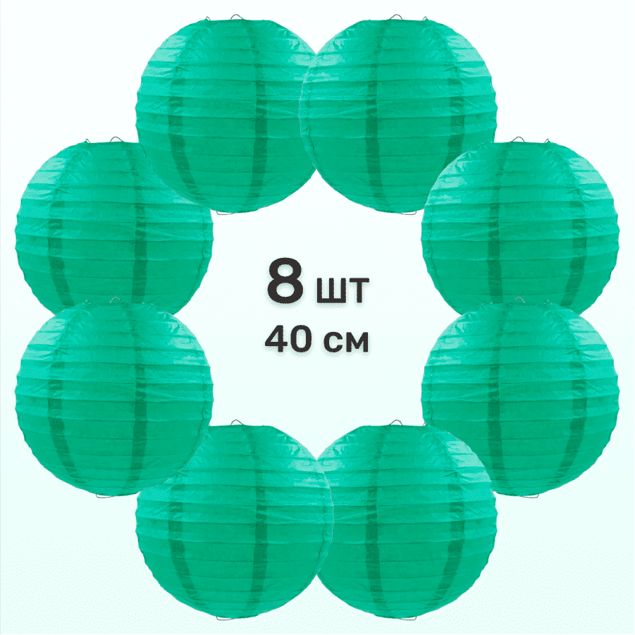 Комплект подвесные фонарики 40 см х 8 шт, изумрудный