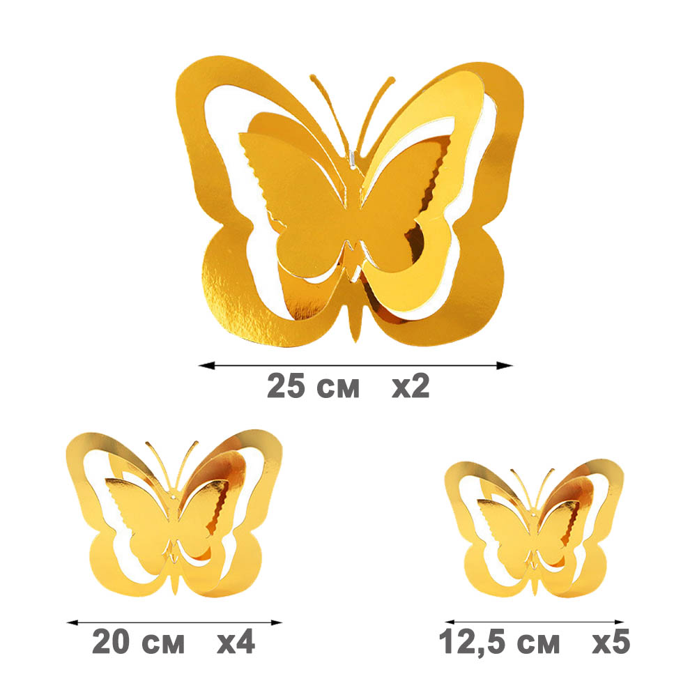 Набор подвесок Бабочки 3D 11 шт золото