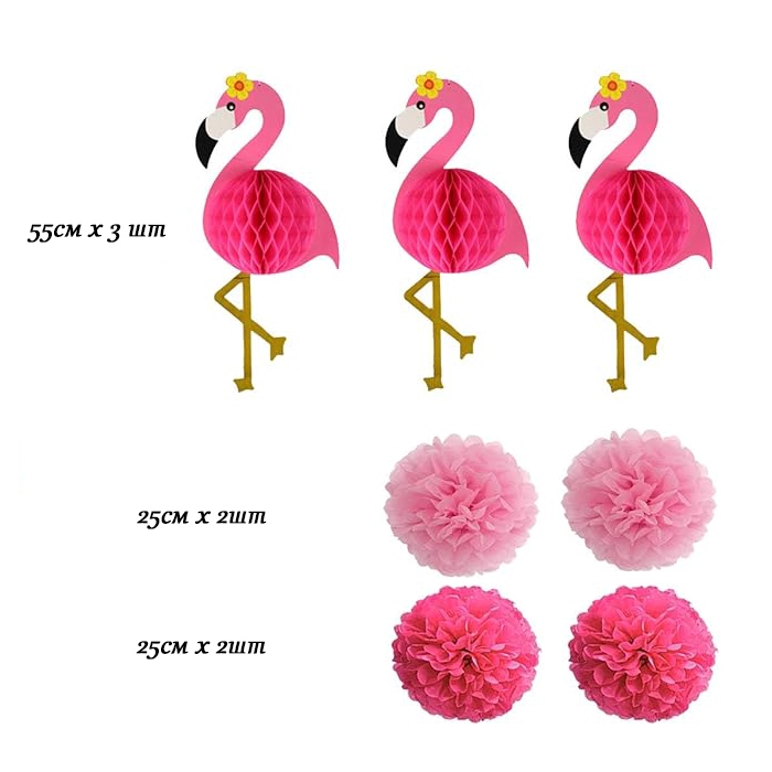 Сотовый шар с фламинго, 3 шт: