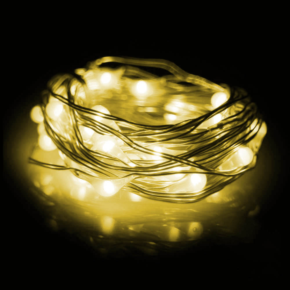 Нить "Роса" серебро, 2 м х 20 диодов, от батареек, желтый