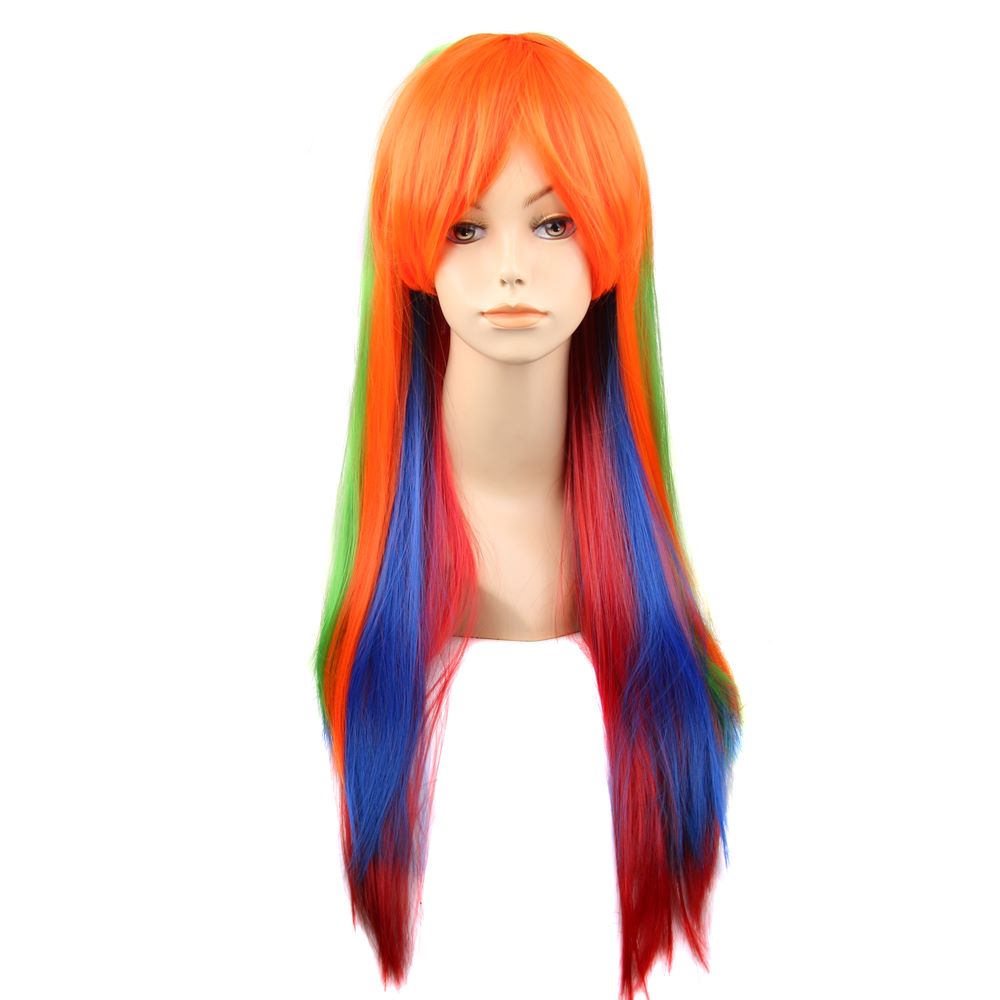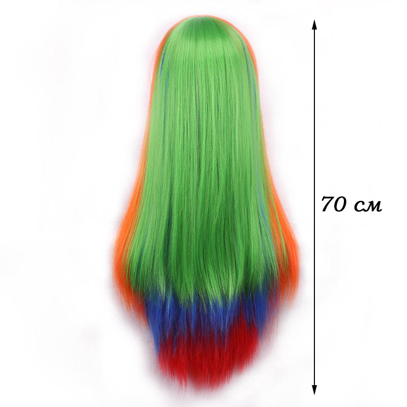 Парик радужный длинный изготовлен из современного искусственного материала.