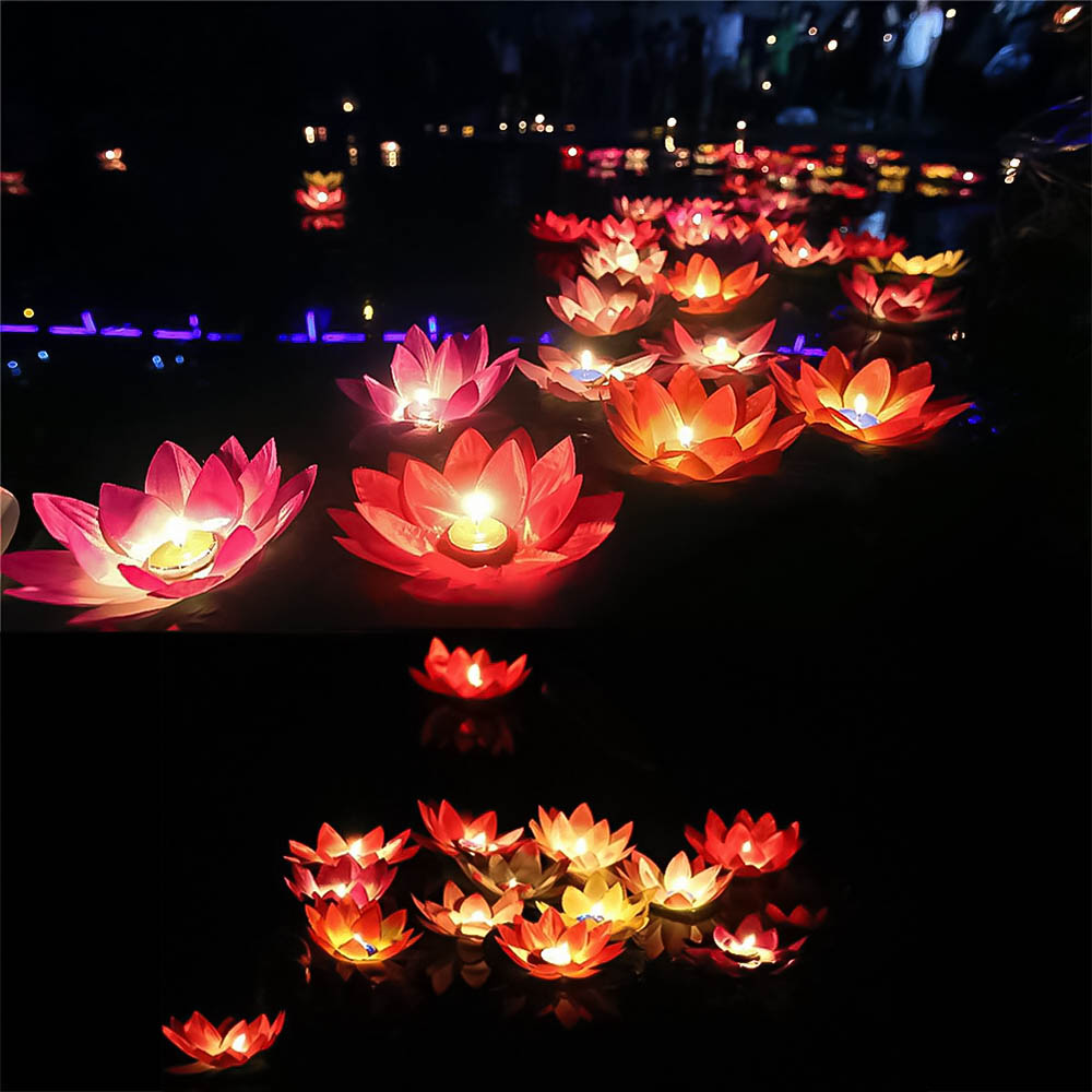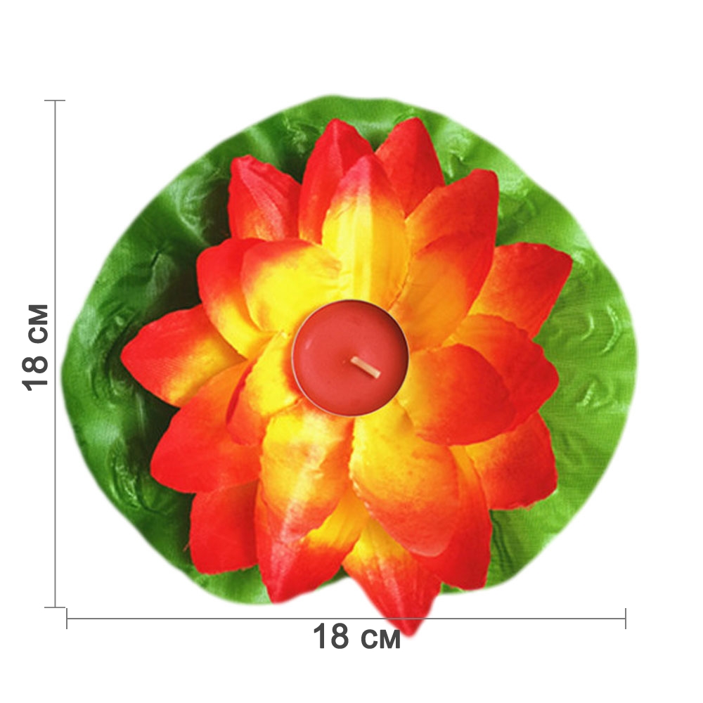 Плавающий фонарик из шелка Лотос 18х18 см красн.+лимон.