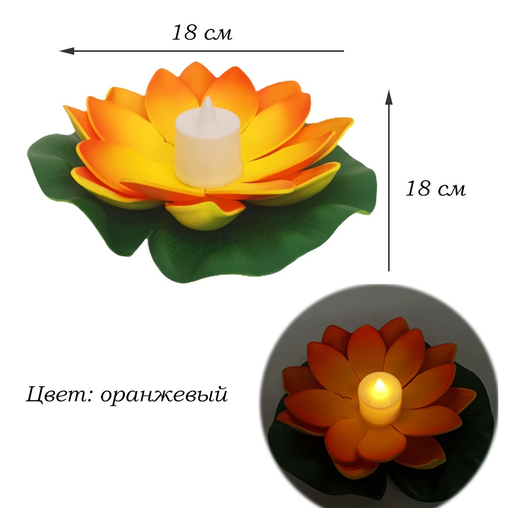 Плавающий фонарик Кувшинка со свечей 18х18 см, оранжевый