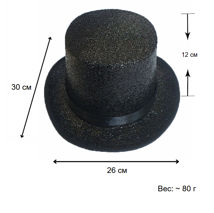 Шляпа Цилиндр с блеском, черный