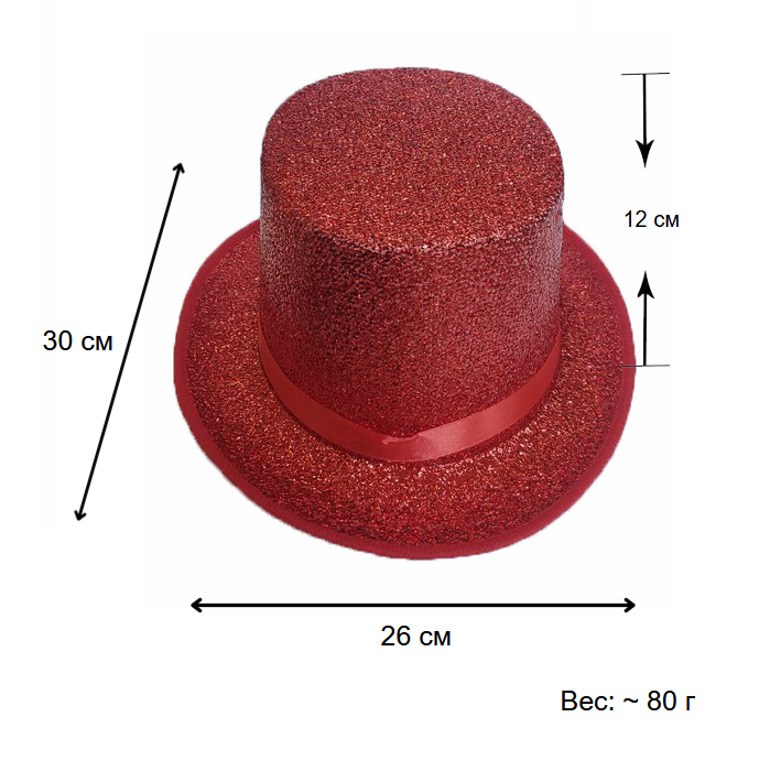 Шляпа Цилиндр с блеском, красный