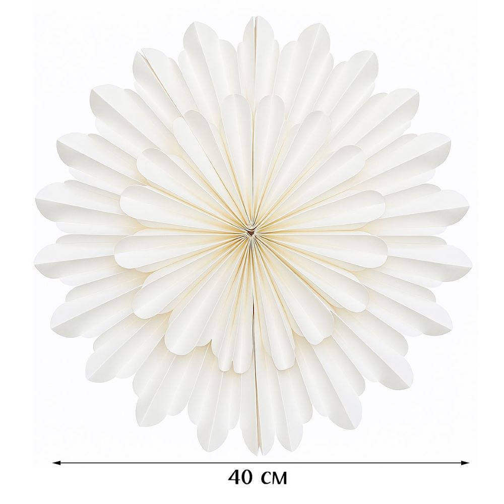 Элегантная объёмная снежинка из плотной бумаги станет стильным украшением зимнего интерьера. Нежный белый цвет придаёт оформлению лёгкость и ощущение снежной свежести, а ажурный узор делает декор утончённым и нарядным.