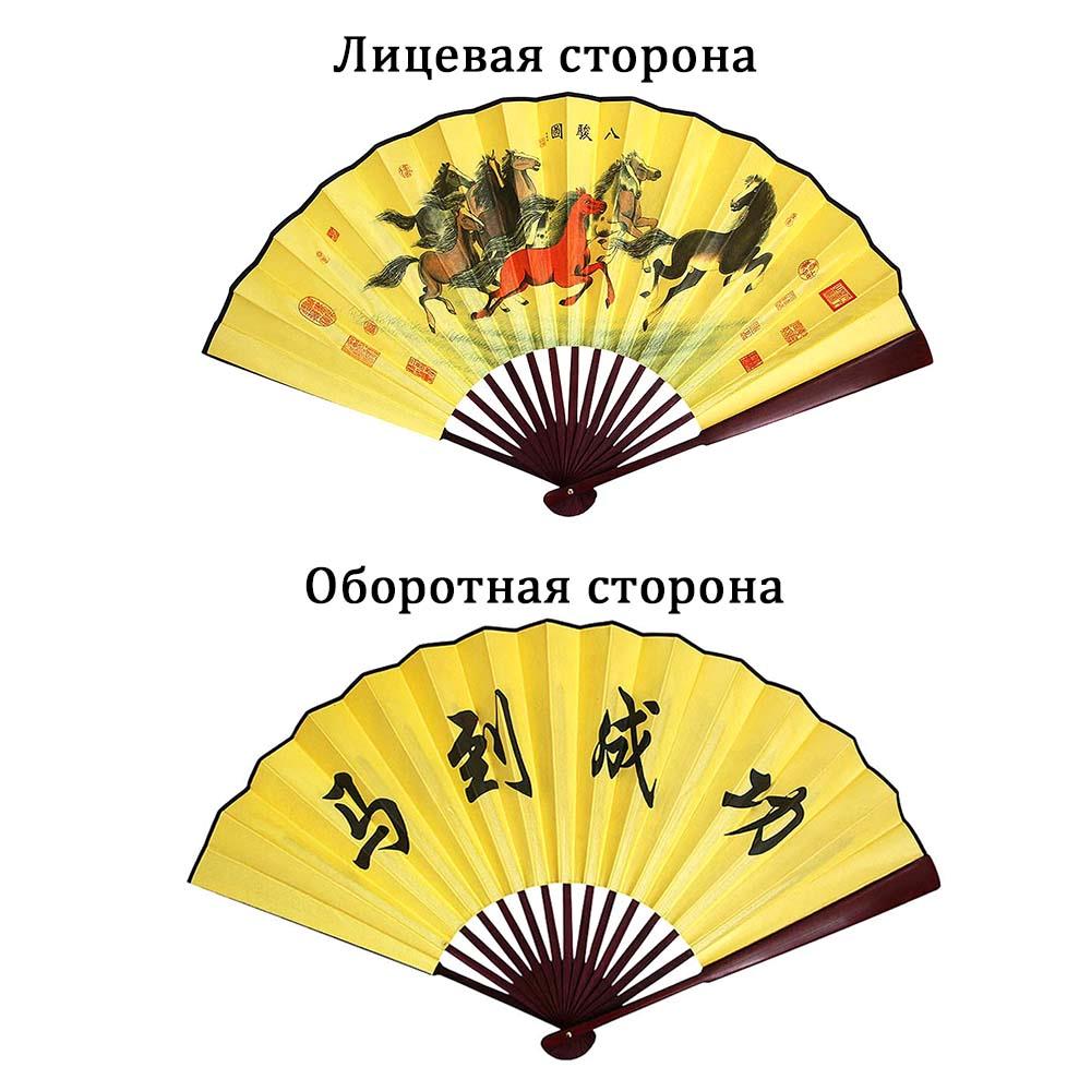 Двухсторонний складной веер для танца. Выполнен из бамбука и плотной ткани, обладает профессиональным тугим ходом.