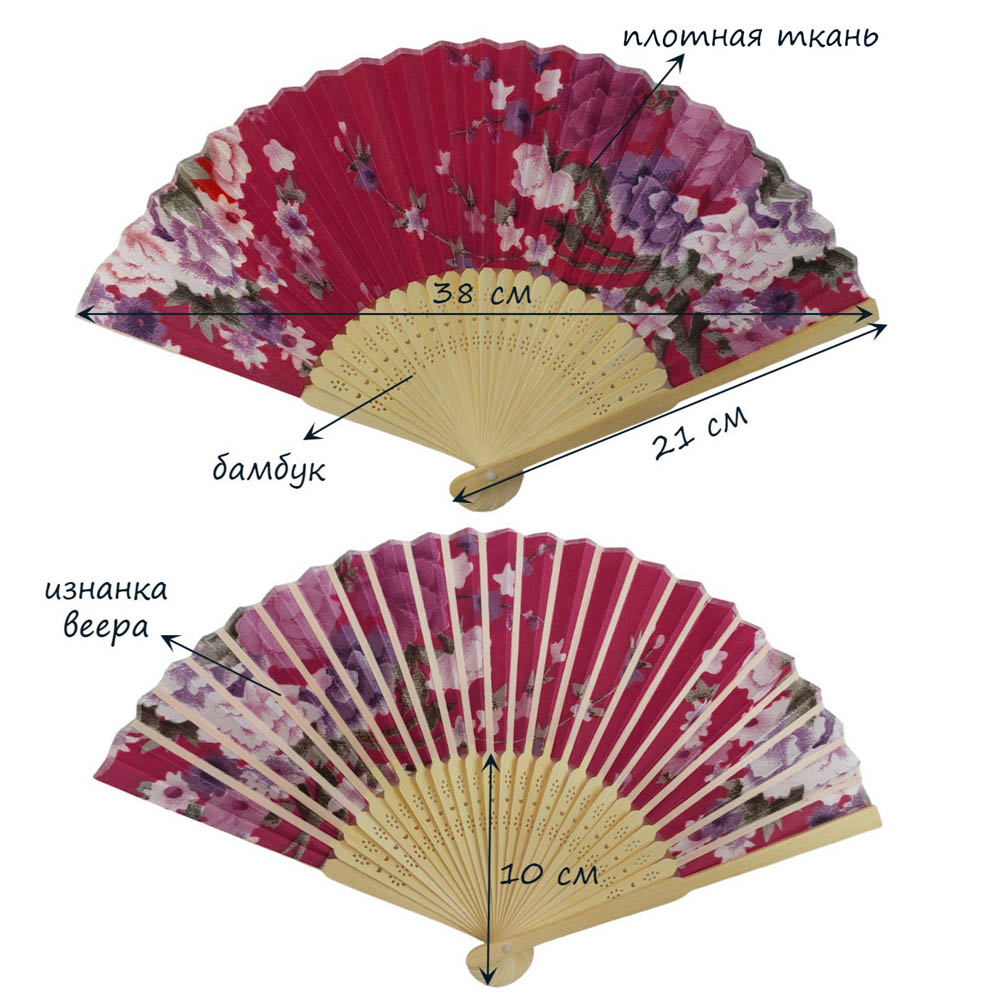 Веер с цветочным узором 38х21 см, №10