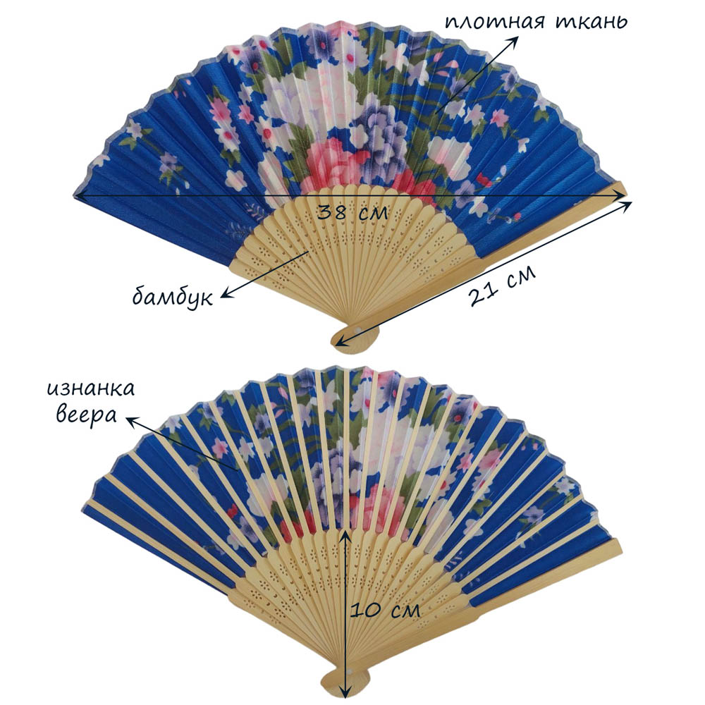 Веер с цветочным узором 38х21 см, №2